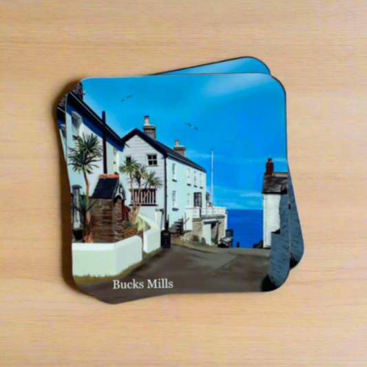 Bucks Mills Coaster – North Devon Coastal Art Print, Cork-Backed Nautical UK Travel Coaster Table Matr