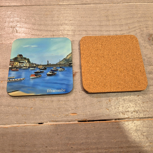 Ilfracombe Harbour Coaster – Coastal Art Print, Cork-Backed Nautical Coaster, North Devon UK Travel Gift