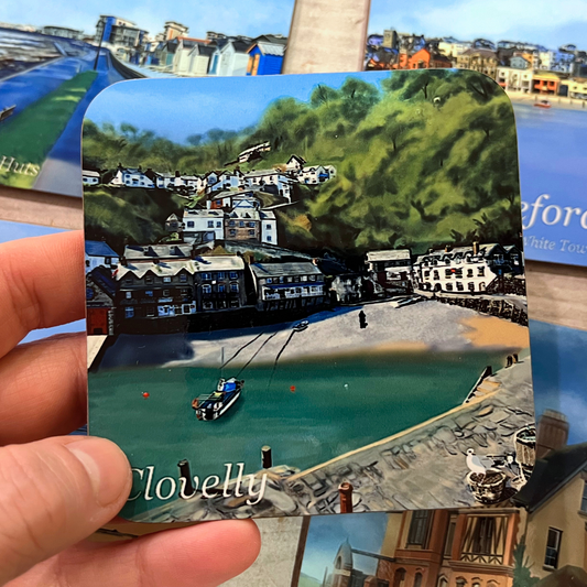 Clovelly Coaster – Handmade Sublimated Artwork of the Iconic Devon Harbour Village - North Devon Travel Gift
